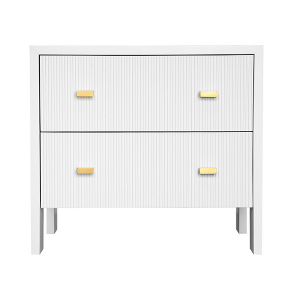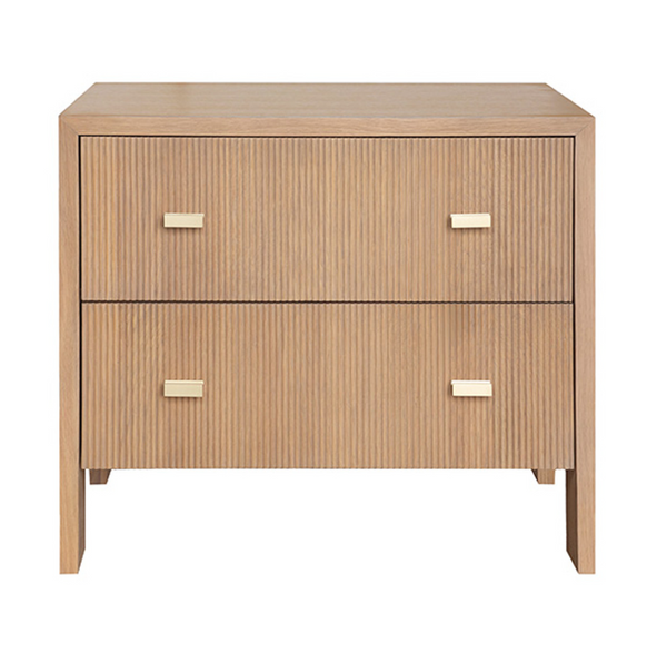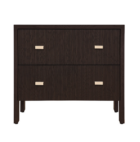 Andre Two Drawer Side Table w/Brass Knobs- Espresso Oak, Natural Oak or White Lacquer
