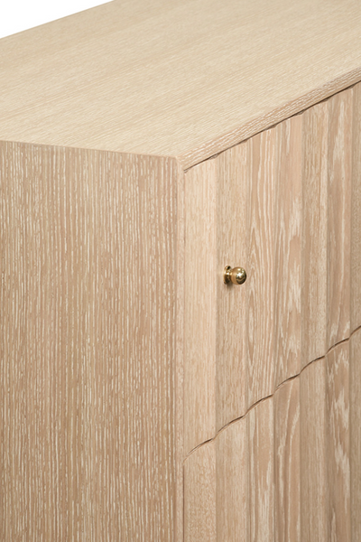 Angus Fluted Cerused Oak Four Drawer Chest with Brass Knobs