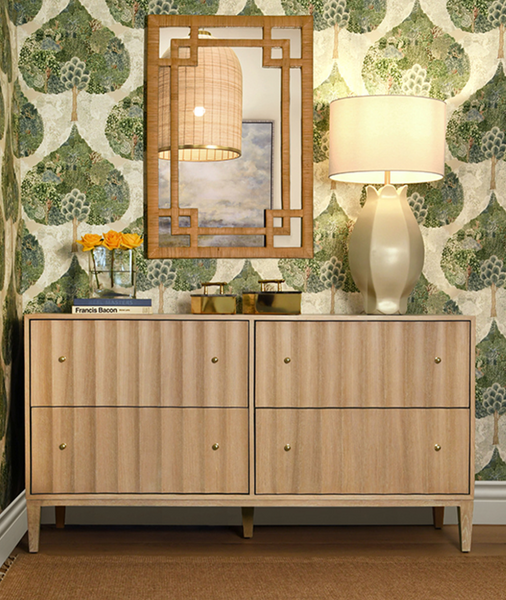 Michelle Natural Grasscloth, Glass Top, Four Drawer Chest with Brass Knobs
