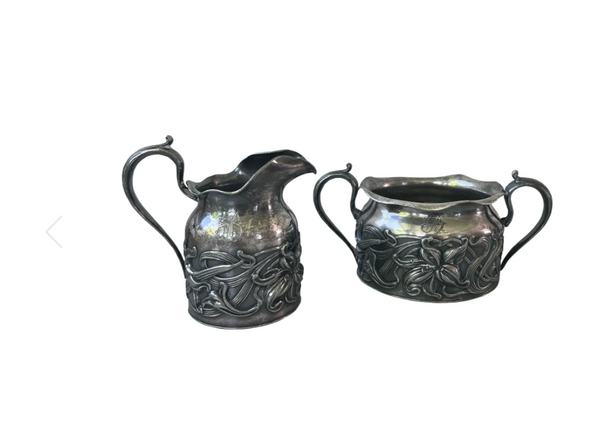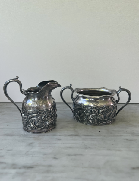 Antique Art Nouveau Silverplate Creamer and Sugar Set - 2 Pieces
