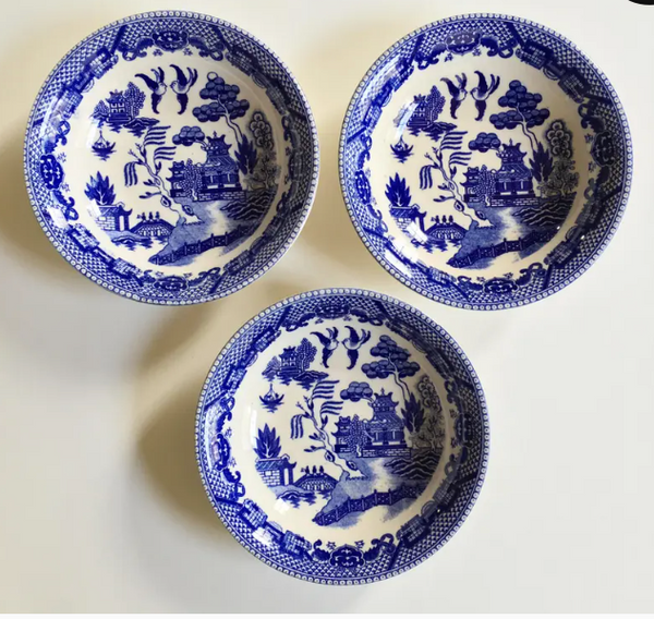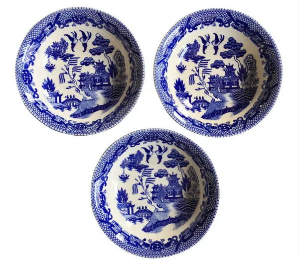 Antique Blue Willow Patterned Bowls - Set of 3, Japan