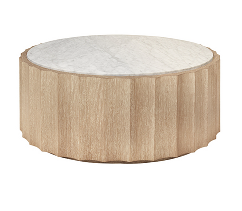 Granger Cerused Oak Square Fluted Coffee Table with Inset White Carrara Marble Top