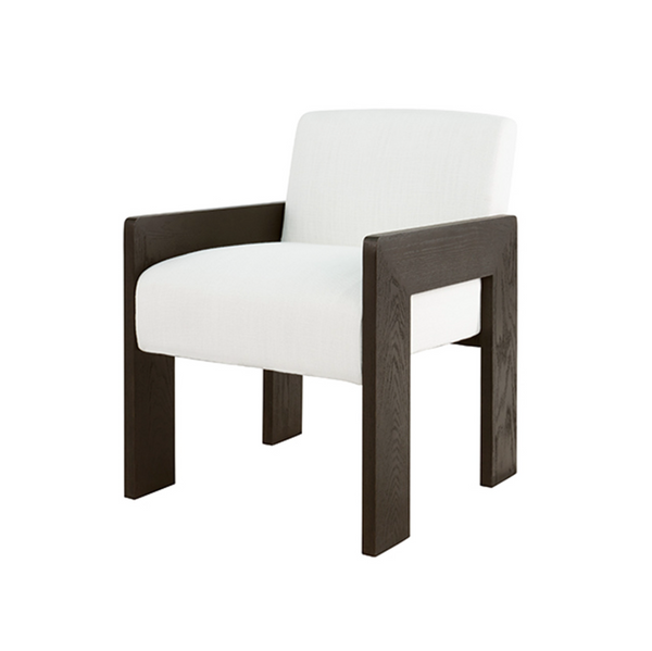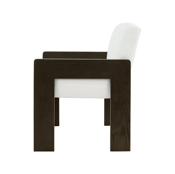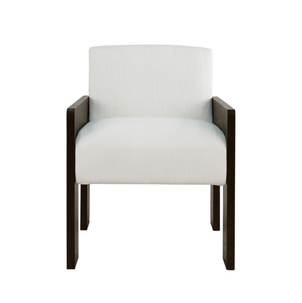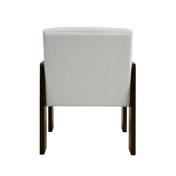 Astor Espresso Oak Square Arm Wooden Accent Chair with White Performance Linen Upholstery