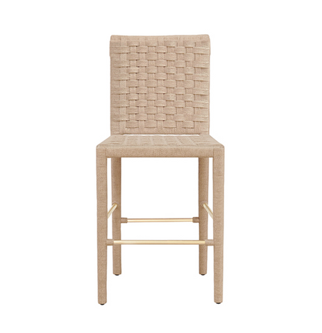 Sadie White Textured Linen Framed Counter Stool with White Performance Linen and Brass