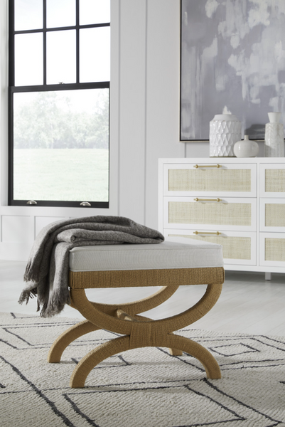 Xanadu White Performance Linen & Wrapped Rope Stool