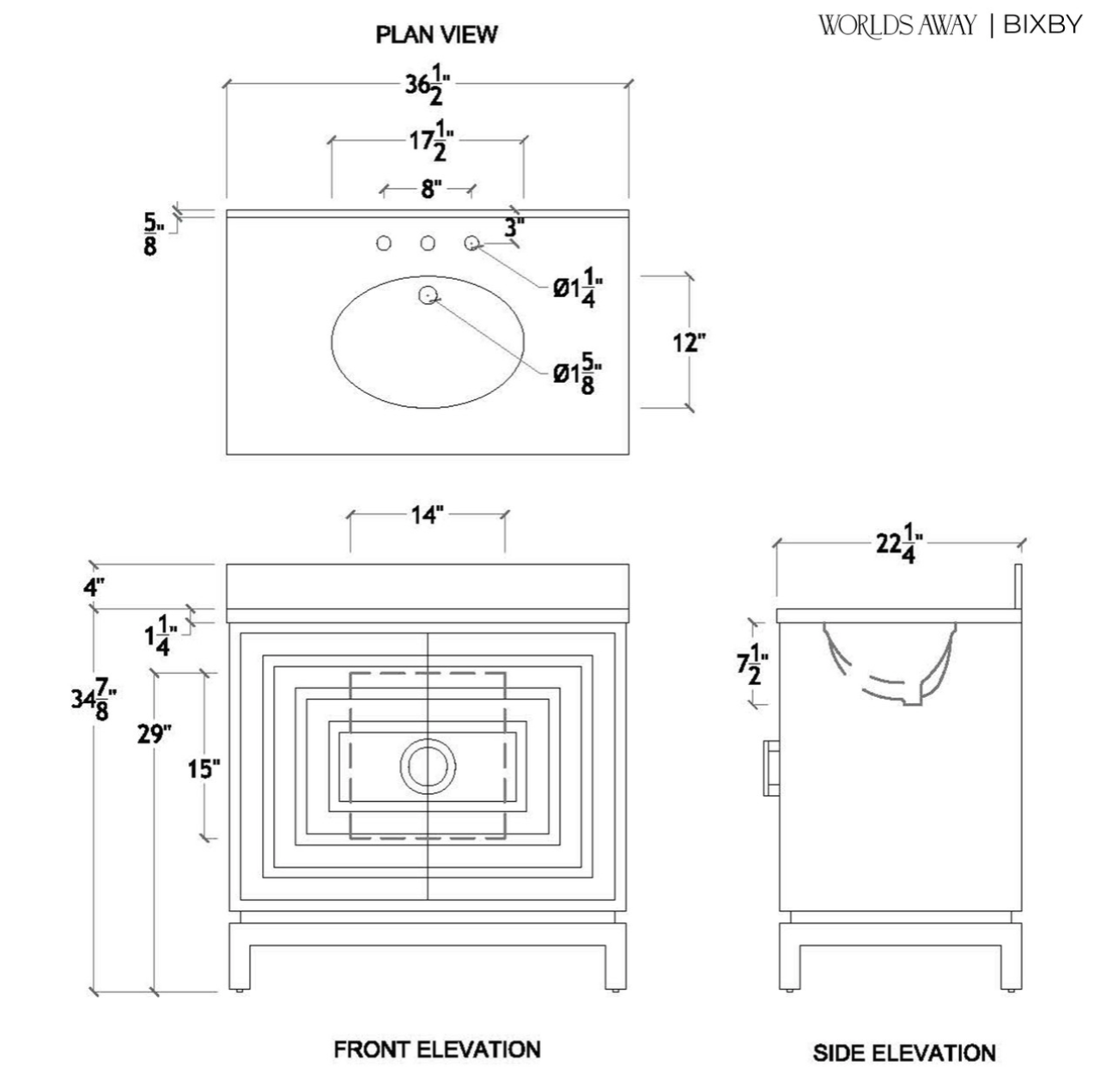 Bixby Art Deco Single Sink Bath Vanity - Cerused Oak, Matte Black, or Matte White