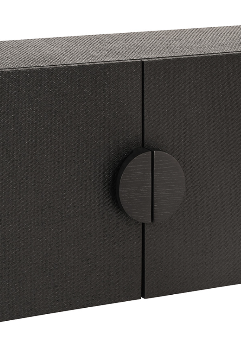 Aspen Two Door Console Table in Black Grasscloth with Black Oak Handles