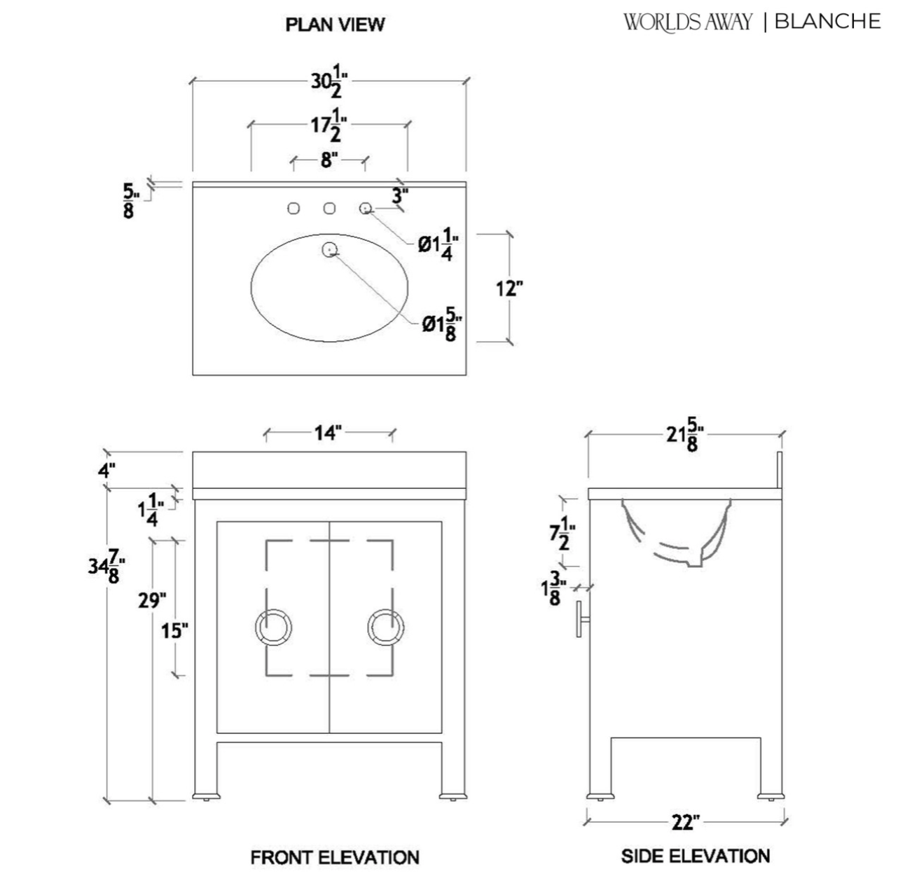 Blanche Single Sink Bath Vanity - Light Burlwood or Navy